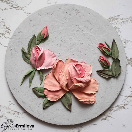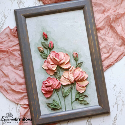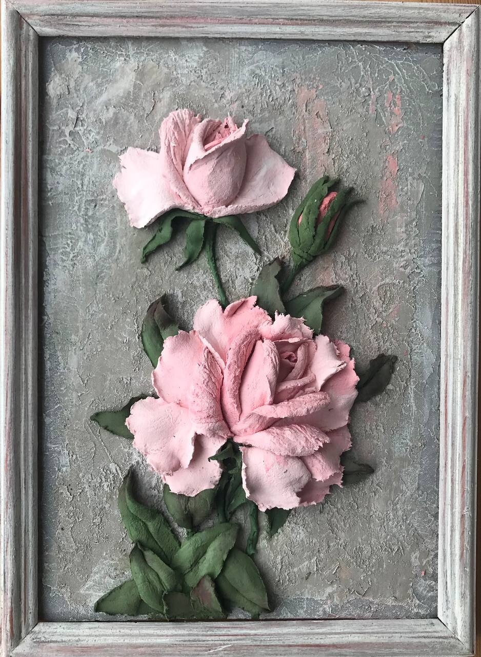 За несколько небольших уроков, мы создадим панно, представленное на изображении, научимся создавать объемные цветы розы