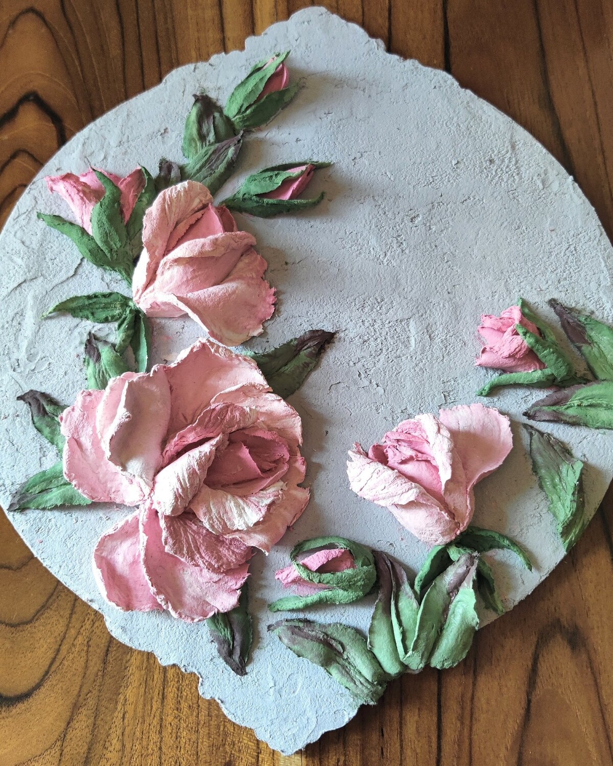 В этом уроке Вы научитесь создавать цветы и бутоны розы, а также создадите красивое круглое панно с розами. Панно представлено на фотографии.