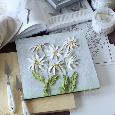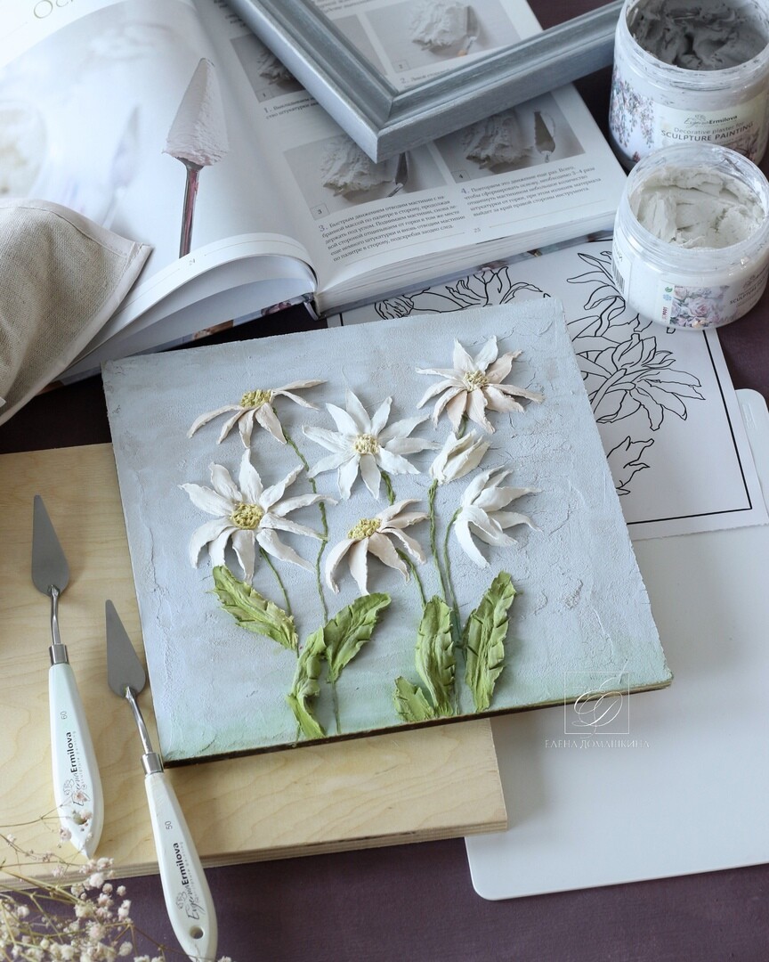 Мы создадим элегантное панно с ромашками и поймем, что скульптурной живописью может заниматься каждый.