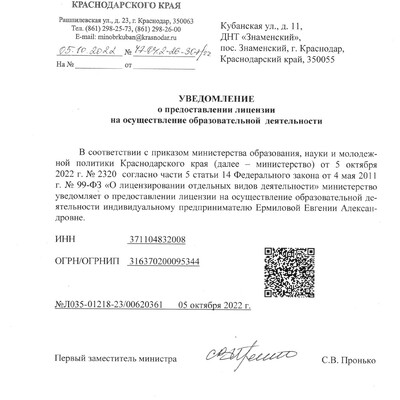 Лицензия на образовательную деятельность № Л035-01218-23/00620361 от 5.10.2022г.