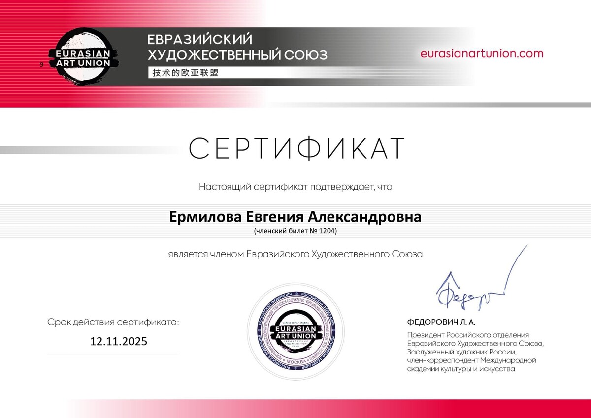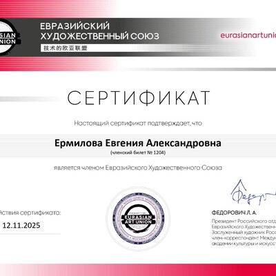 - Евгения Ермилова профессиональный художник-колорист с академическим образованием в области изобразительного искусства и моды. Член Евразийского художественного Союза