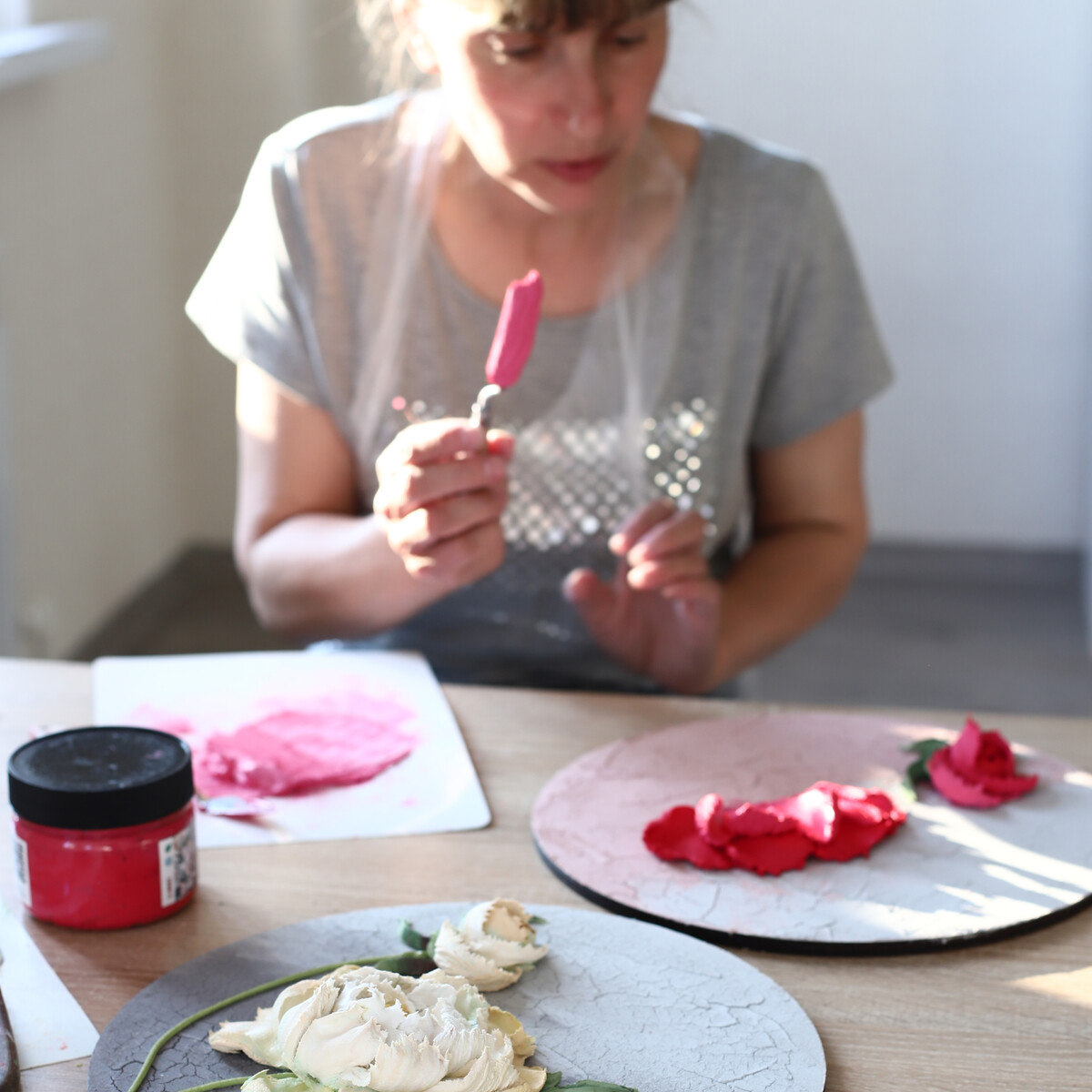 Посмотрите видео с мастер-класса "Пион", прошедшем в мае 2023 года. Локация та же - ул. Брюллова 12, "Поселок художников", метро Сокол, Москва
