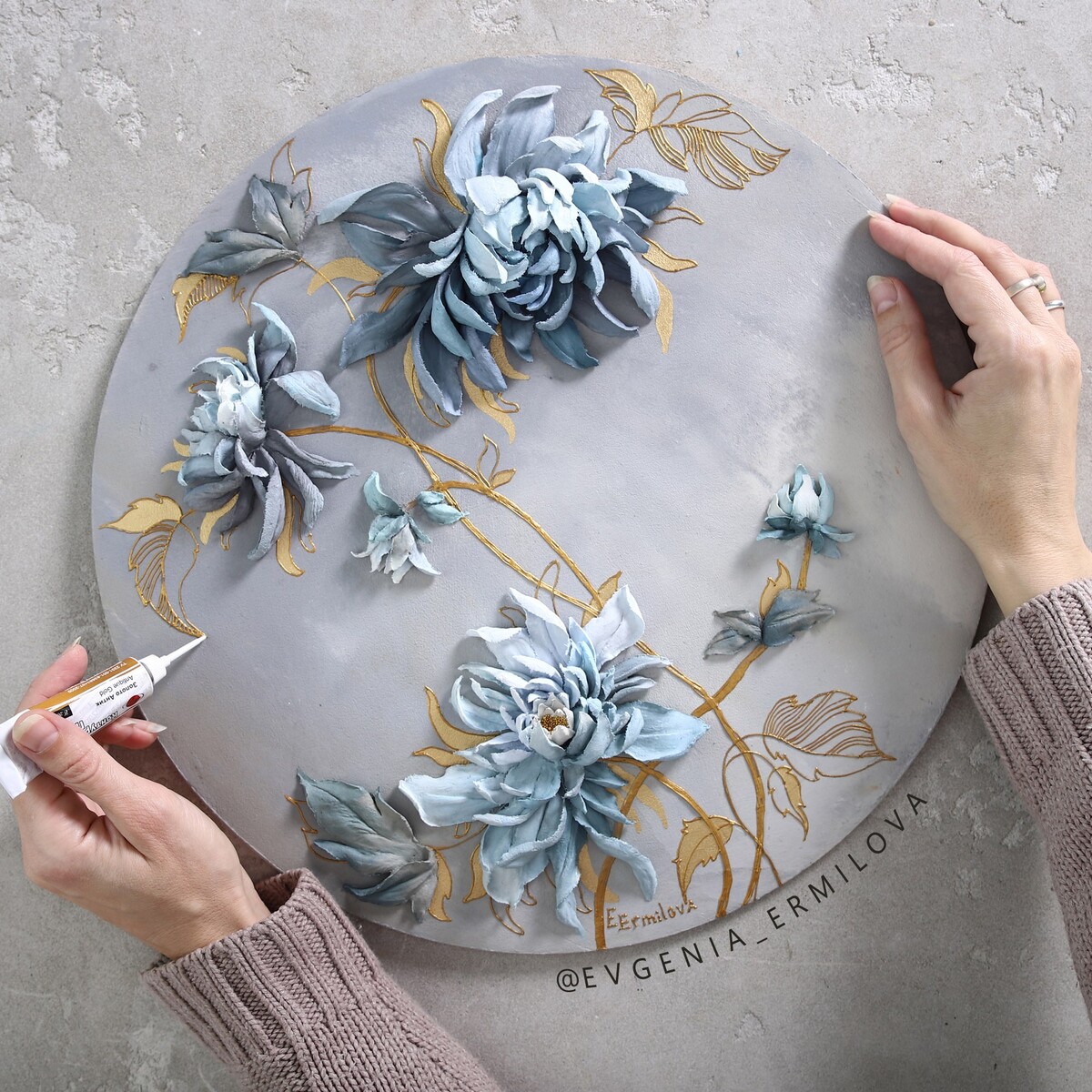 - Евгения - основатель торговой марки материалов для творчества Evgenia Ermilova™. Мы производим под этим брендом текстурные пасты и мастихины. Продукция производится в России и экспортируется в более чем 20 стран мира. Вся продукция сертифицирована, торговая марка официально зарегистрирована.